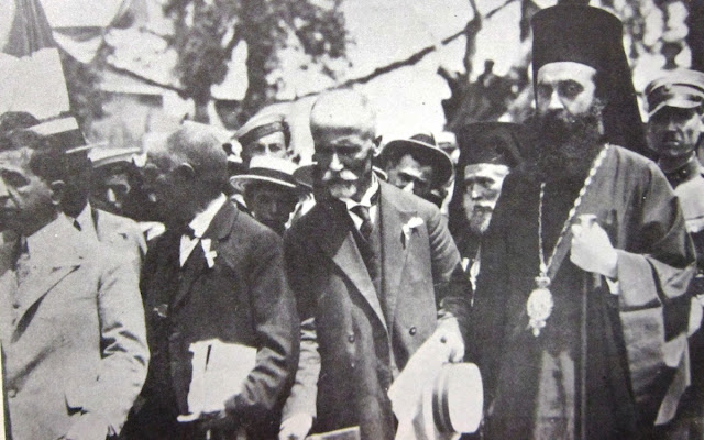 Δεξιά, καθισμένος στο γρασίδι, είναι ο Μητροπολίτης Κερκύρας Αθηναγόρας (μετέπειτα Αρχιεπίσκοπος Αμερικής και Οικουμενικός Πατριάρχης).